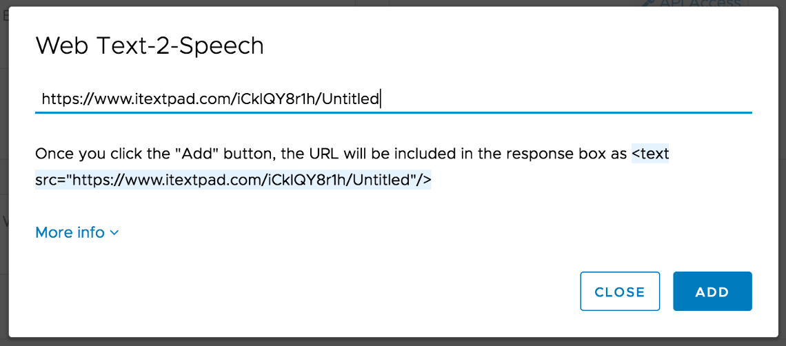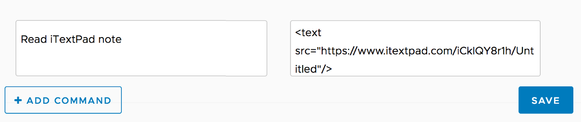 The web text-2-speech feature in Good Vibe allows you to link a command response to any web content, opening the doors to integrate with many 3rd party services with dynamic and static html and plain text content.