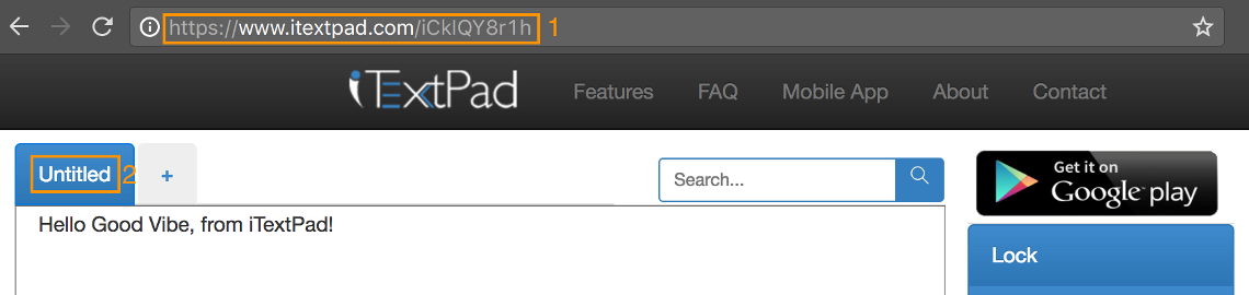 By default the name of the note is "Untitled", but you can name it anyway you want by double clicking on the note tab. So if we name our note "note-1", the URL would be https://www.itextpad.com/iCkIQY8r1h/note-1